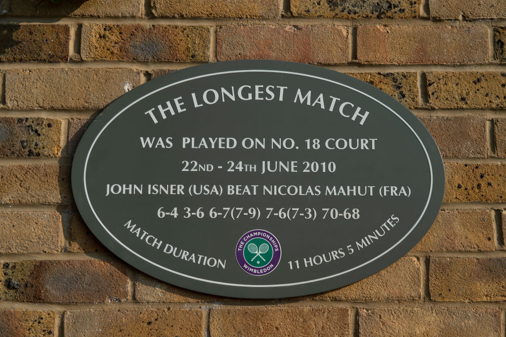 El duelo entre Isner y Mahut se llevó a cabo en la primera ronda de Wimbledon en 2010, comenzó el 22 de junio y terminó hasta el 24 por diferentes factores. En un principio, tuvo que suspenderse y continuar el 23 por falta de luz; sin embargo, ese día volvió a aplazarse por las condiciones climáticas en el quinto set.
