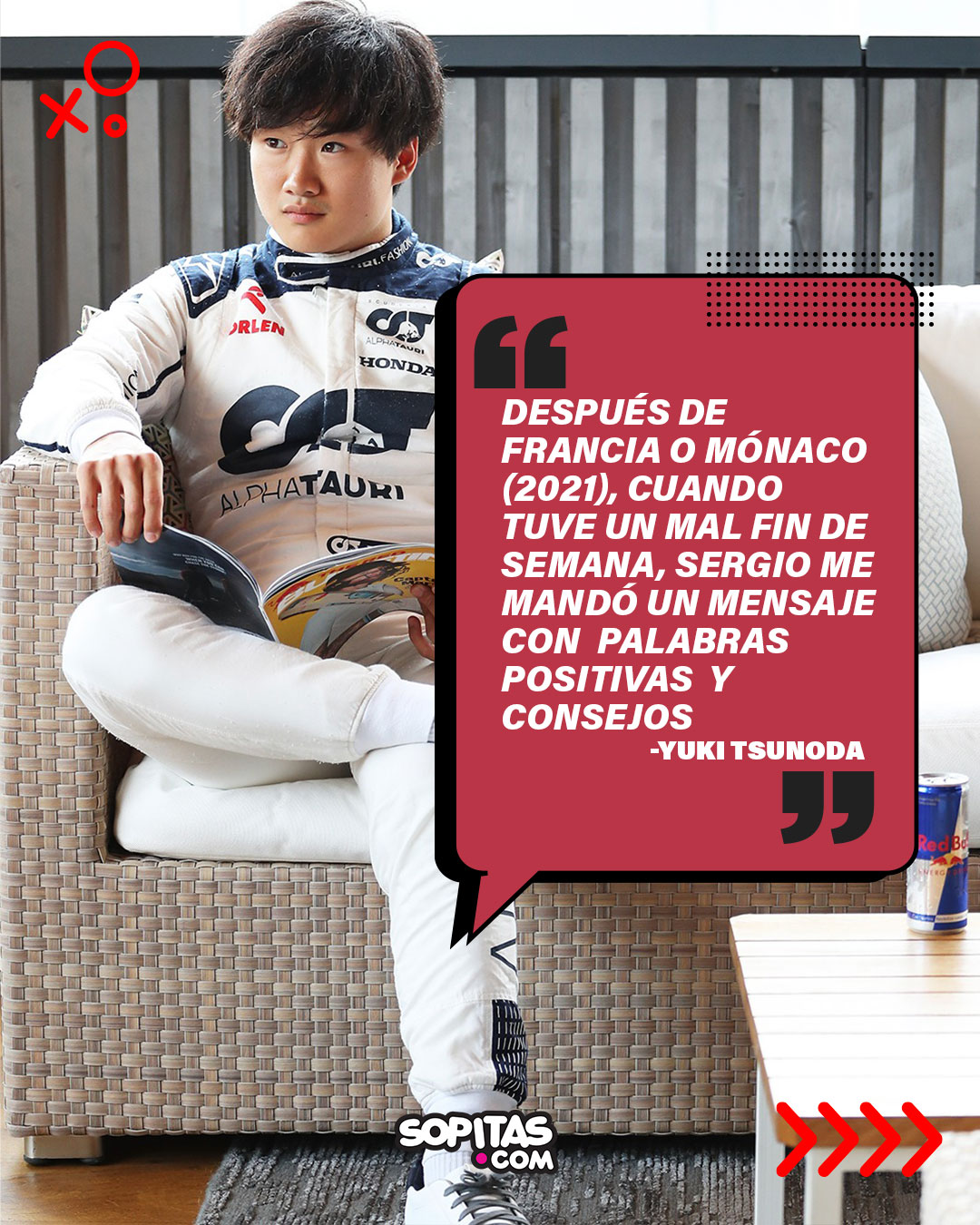 Tsunoda ha aceptado que ha aprendido de Checo Pérez gracias a la relación entre la escudería AlphaTauri y Red Bull, sobre todo en el primer año. “Sergio me da muchos consejos. Después de Francia o Mónaco (2021), cuando tuve un mal fin de semana, me mandó un mensaje con algunas palabras positivas para mí y consejos y eso me motiva, así que estoy realmente agradecido a Sergio“.
