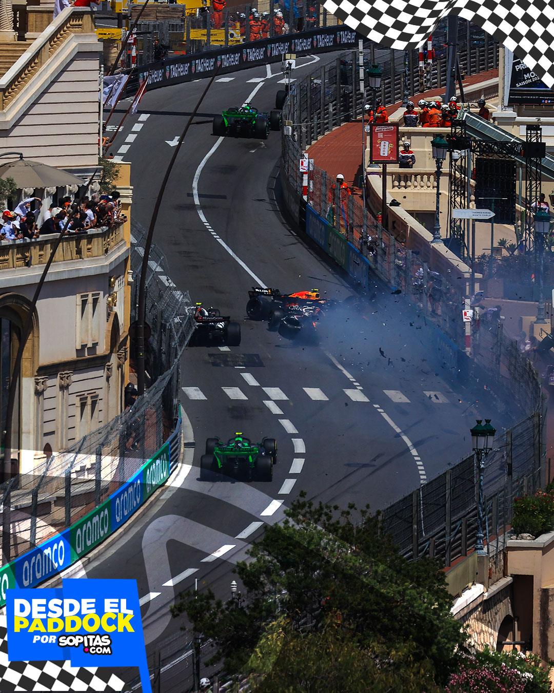 Si Drive to Survive quería destacar los errores de Checo, pudo hacer referencias específicas, como el choque en Mónaco, Canadá Azerbaiyán y/o el abandono en Qatar, donde los discursos de Pérez y Horner comenzaron a cambiar.