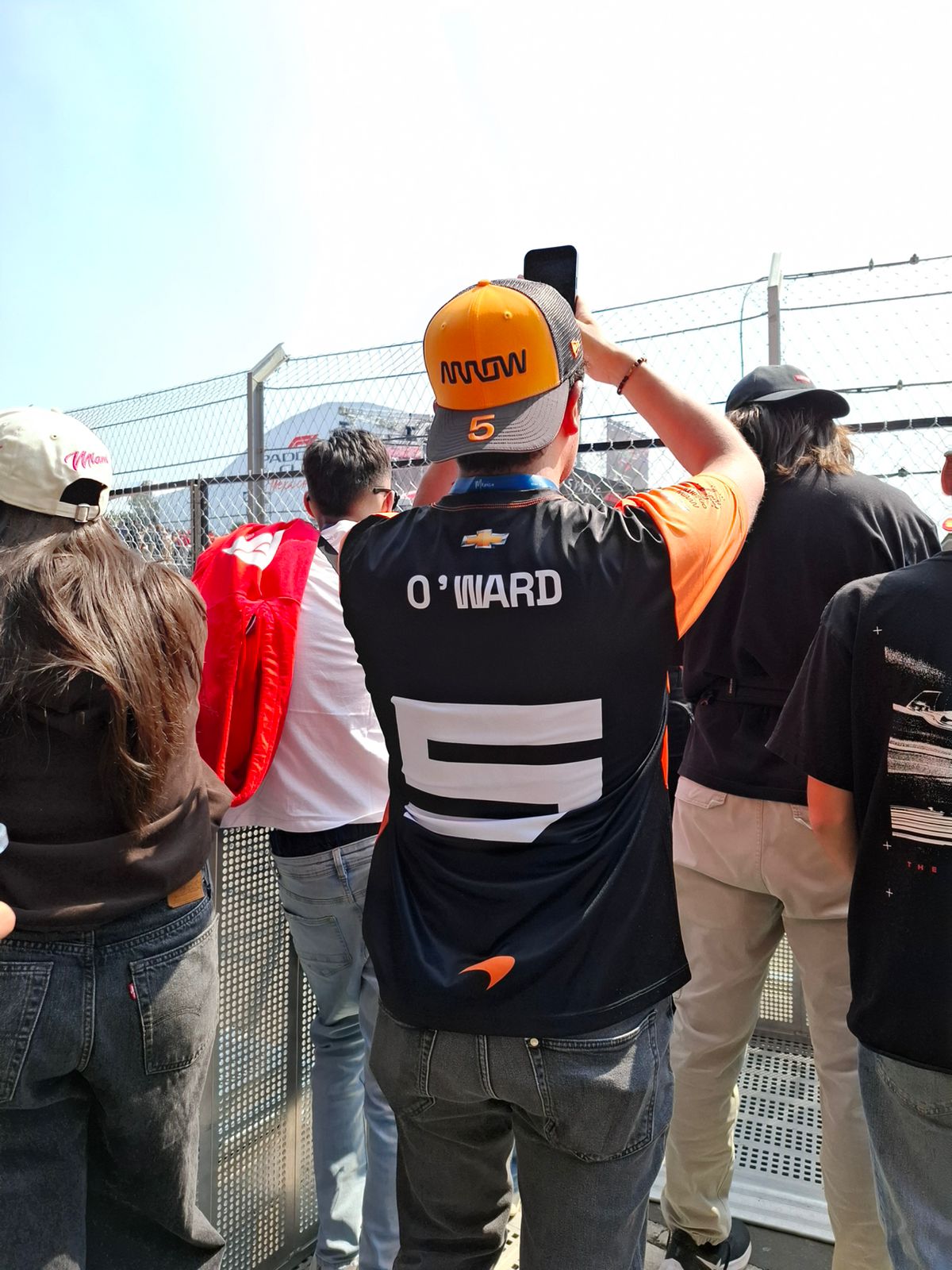 En las tribunas, hubo banda apoyando al piloto mexicano, quien terminó como subcampeón en la más reciente temporada de IndyCar.