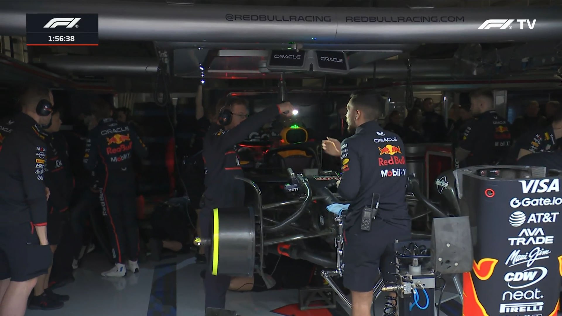 Caía la noche en Bahréin cuando se cortó la energía eléctrica, por lo que vimos escenas que parecían de película. Los mecánicos tuvieron que andar con linternas en los boxes, la iluminación de la pista era nula y tampoco había luz en las oficinas de la FIA. Todo quedó a oscuras, desde el paddock hasta el pitlane, hospitality, la sala de prensa y las pantallas de los comisarios, algo completamente insólito en la Fórmula 1.