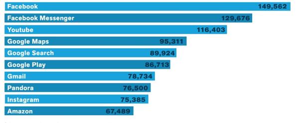 Así están las posiciones de las aplicaciones más populares en Estados Unidos y los millones de usuarios únicos que tiene cada una: