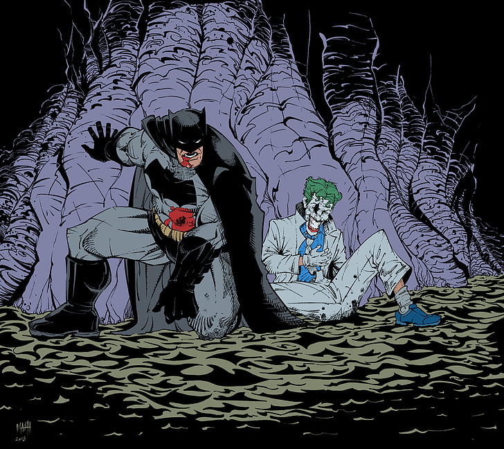 Y algo similar sucede en The Dark Knight Returns, donde un avejentado Batman libra una última pelea con el Guasón. Aquí, el Murciélago mantiene una batalla interna porque sabe que de haber terminado con la vida de su archienemigo desde hace años, hubiera evitado que este asesinara a tanta gente. Y en su último combate, el Guasón lleva al límite a Batman, buscando que el héroe rompa su más preciada regla sobre no matar.