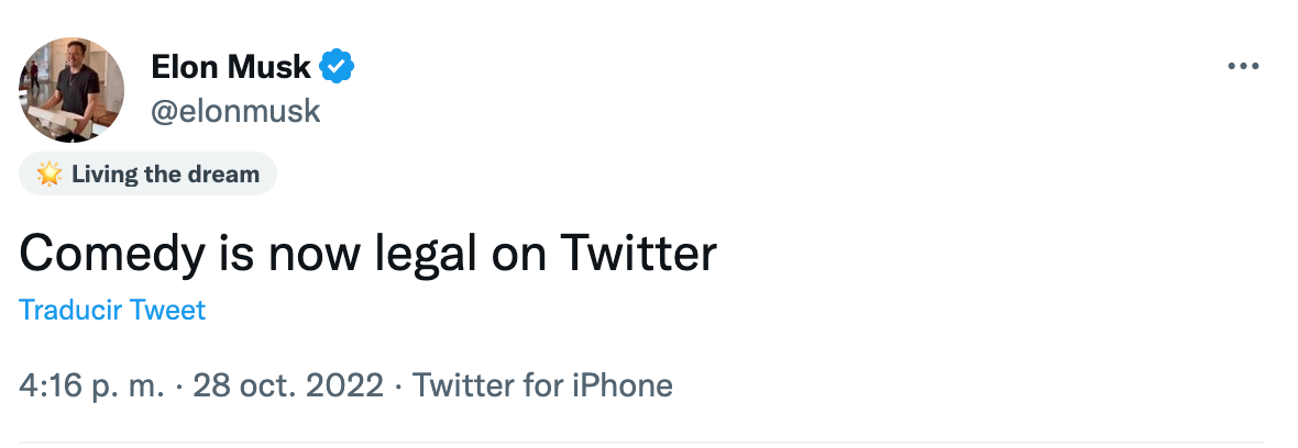 A esto habría que sumarle que Elon Musk publicó un tuit donde además se puede ver la frase “living the dream”, lo que supone la llegada de los estados en Twitter. Todo indica que la idea del nuevo jefe de la red social es permitir la personalización de cada cuenta a otro nivel, dándole chance a los tuiteros de fijar una frase o emoji para mostrar su estado de ánimo. Lo más curioso de todo el asunto es que esto ya se había visto en los inicios de la aplicación, solo que se hacía de otra manera y directamente en un tuit… ¿presentándonos funciones del pasado?