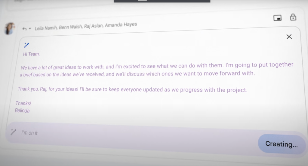 Según la presentación —que hasta se hizo viral— la nueva IA de Gmail y Google Docs te va a ayudar a que tus respuestas sean más completas, profesionales y hasta floridas.