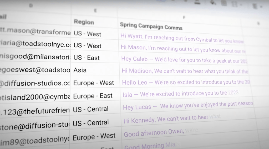 En otro de los momentos de la presentación con IA, enseñaron que podías usar la base de datos de tus clientes en Google Docs para crear mensajes personalizados en Gmail.
