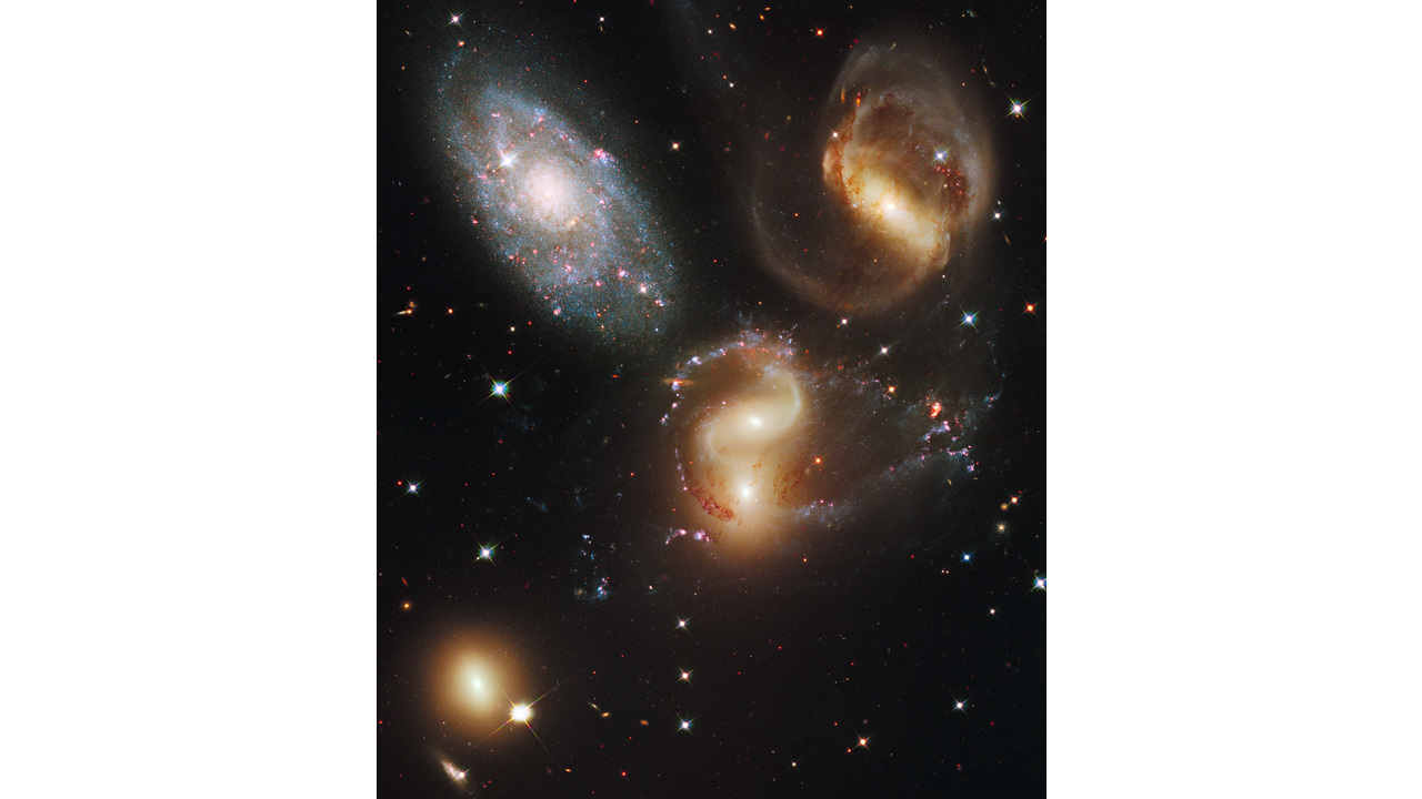 Ahora vamos a echarle un ojo a este mismo conjunto de galaxias pero en una imagen tomada por el telescopio Hubble, que es el antecesor científico del James Webb.