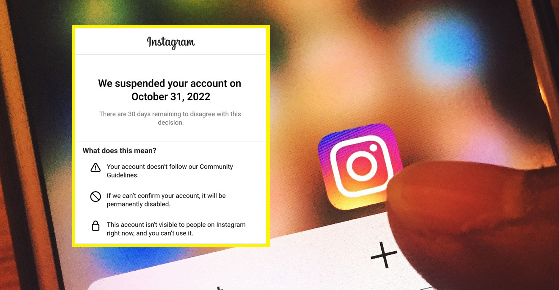 “Suspendimos tu cuenta el 31 de octubre de 2022, tienes 30 días para expresar tu desacuerdo con esta decisión”, aparecía en la pantalla de inicio de miles de usuarios de Instagram.