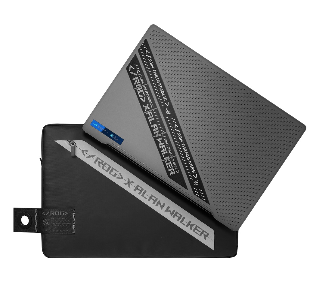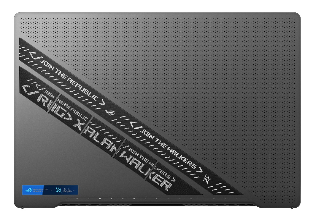 Alan Walker fue parte del proceso de diseño de esta laptop. La placa de identificación luce irreal, junto con la idea de Walker de incluir su propia firma junto al logotipo de ROG. Esta placa de identificación tiene una reflectividad increíble que cambia desde diferentes ángulos.