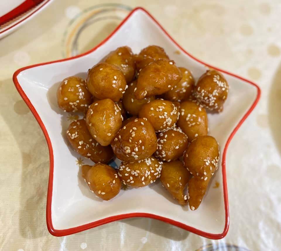 Luqaimat. Son pequeñas bolitas de masa fritas, también llamadas dumplings y son el postre perfecto. Recubiertas con miel o almíbar y adornadas con semillas de sésamo. También son típicos de Turquía y de Grecia.