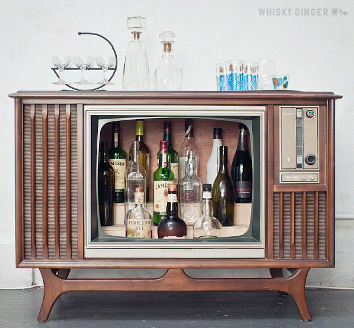 Sobre todo si eres de aquellos que le encanta ser anfitriones y que les chuleen sus cosas. Quitándole todo el cablerío a la televisión y haciendo unos mínimos ajustes ,como ponerle una luz de pilas (de esas como para el clóset, que son de botón) o agregarle tablillas de madera para acomodar el alcohol, va a ser el personaje más instagrameado de la reunión.