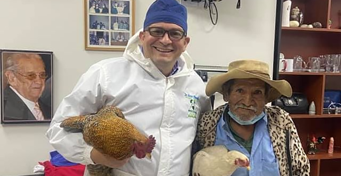 Según lo que contó Álvaro Ramallo, el señor regresó a su consultorio y de inmediato le pusieron una sonda y le informaron que debían operarlo. Afortunadamente la cirugía fue todo un éxito y la cara le cambió al adulto mayor quien para sorpresa todos, regresó una hora más tarde con un gallo y una gallina, los cuales le quería entregar al doctor como muestra de agradecimiento por todo lo que hizo por él.
