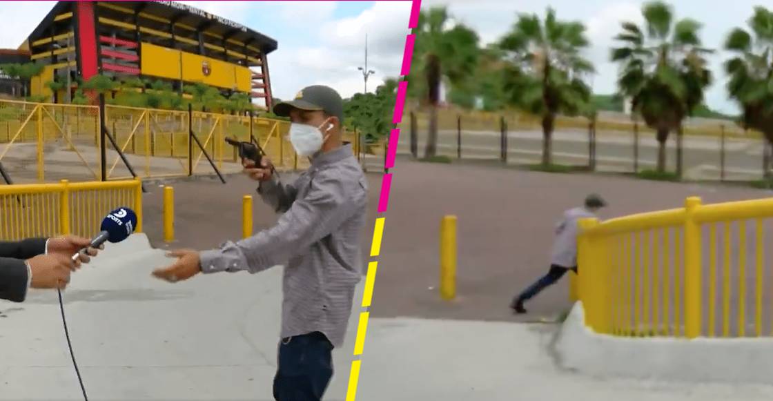 Este hecho ocurrió el pasado viernes 12 de febrero a las afueras del Estadio Monumental Isidro Romero Carbo, de la ciudad de Guayaquil, en Ecuador. El reportero Diego Ordinola publicó un video en donde se aprecia el momento exacto en el que un sujeto con cubrebocas y pistola en mano se acerca y le pide el celular.