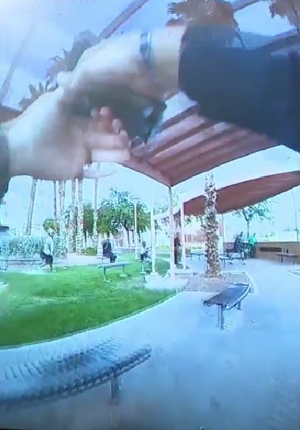 La policía hizo lo que suele hacerse en casos así: le ordenaron que soltara su arma, se quitara la máscara y pusiera las manos sobre la cabeza. El sujeto no acató dicha orden y, de acuerdo con el reporte presentado por el departamento de North Las Vegas, intentó huir al tiempo que sacó su arma y amenazó a otros peatones.