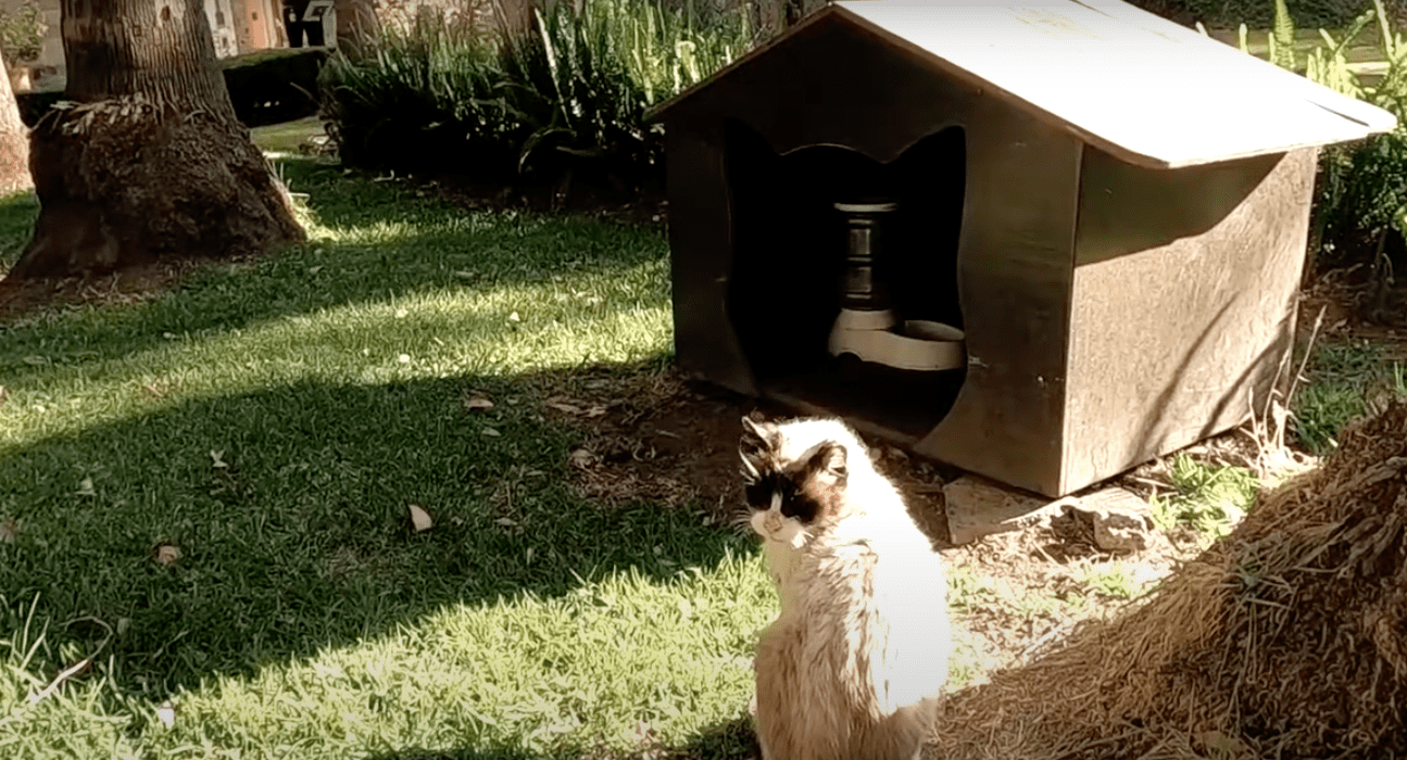 Finalmente, para dormir, los gatos cuentan con casitas especiales que tienen techo doble (para las lluvias) y más de un metro de ancho para que puedan moverse como quieran.