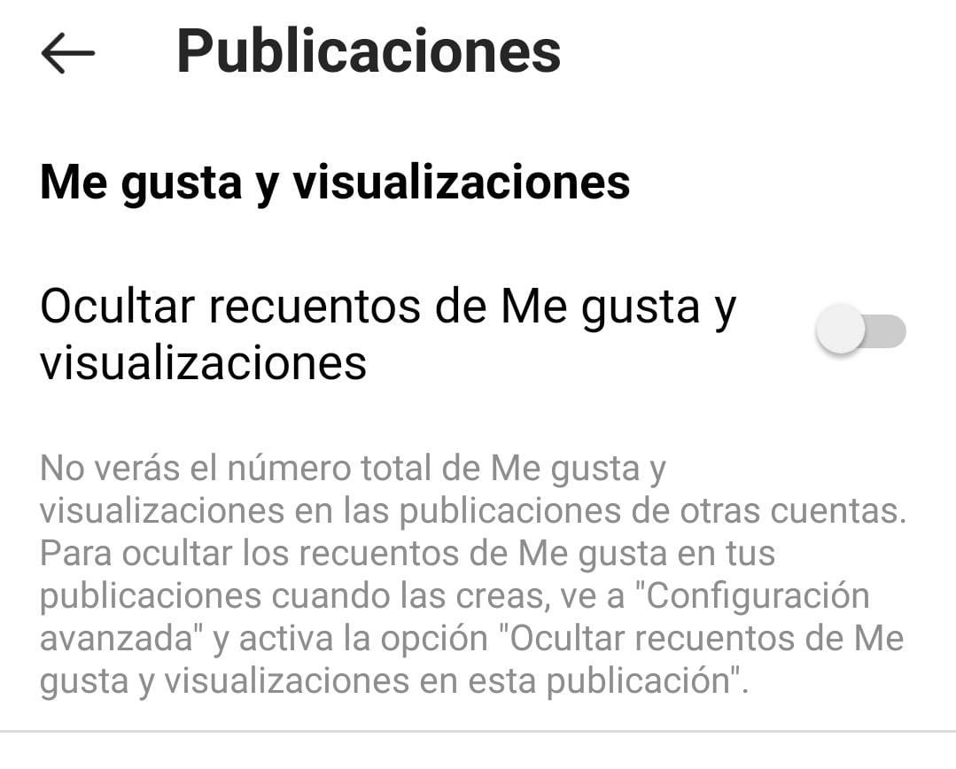 O puedes ocultar los “me gusta” en las publicaciones de los demás