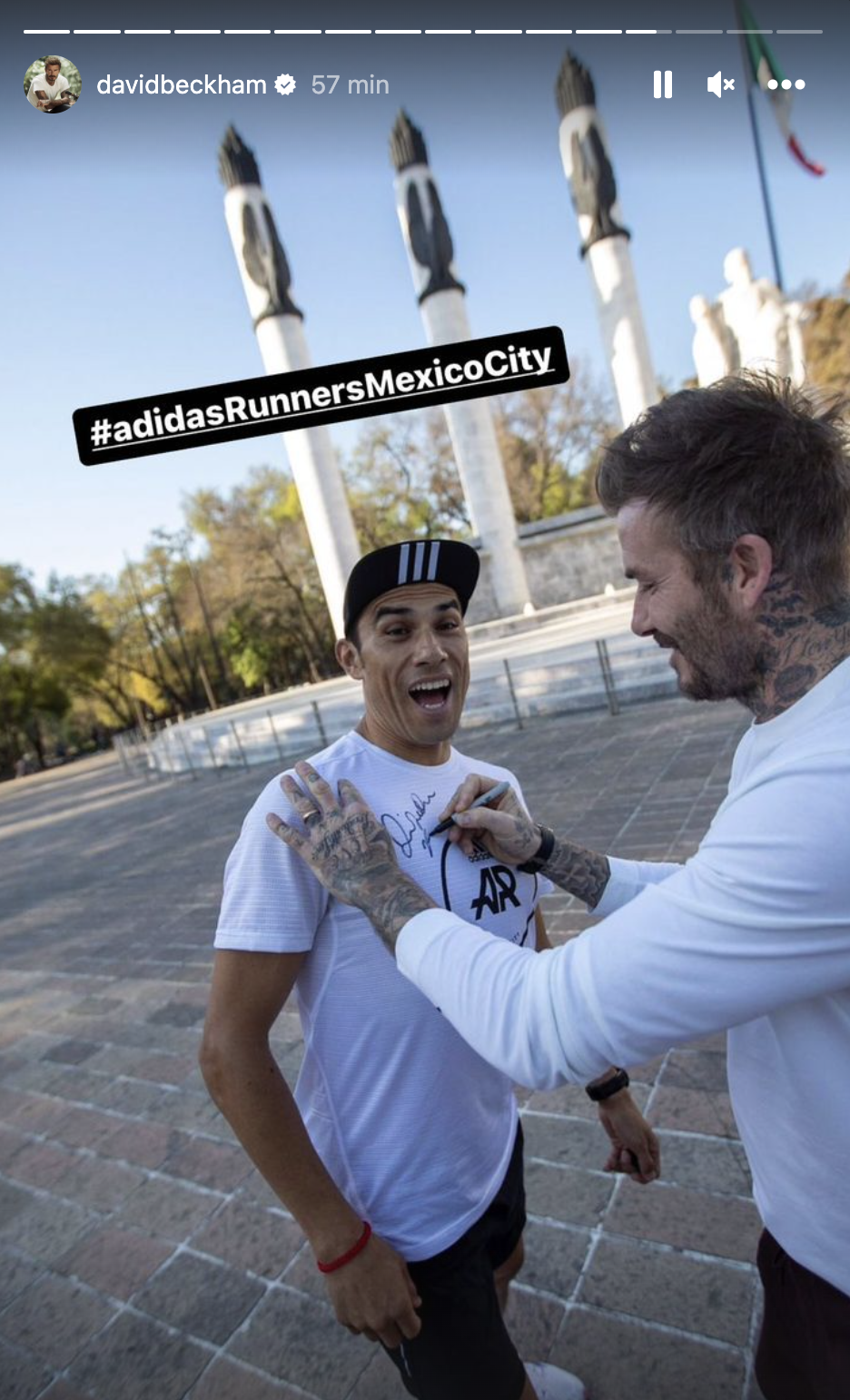 “Qué bueno estar de regreso en México. WOW amo esta ciudad”, escribió David Beckham en la foto en cuestión en la cual, con una mención, nos dio a entender que su visita de trabajo era para estar presente en varios eventos y actividades de Adidas.