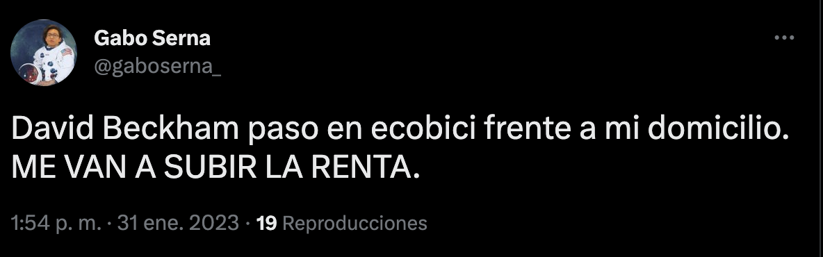 ¿Te imaginaste despertar un día y saber que David Beckham respira el mismo aire no tan puro de la CDMX?, pues el meme se hizo canon. Y es que la noche del lunes 30 de enero muchos nos sorprendimos con la inesperada visita del exfutbolista a la Ciudad de México.