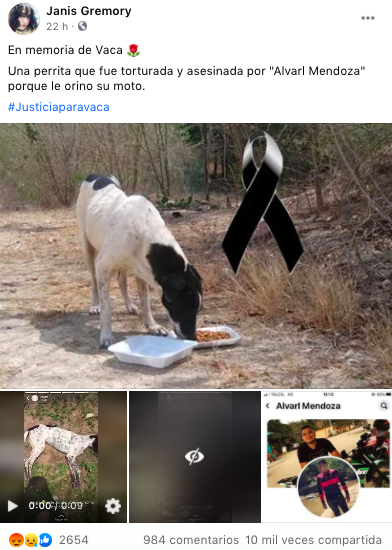 En la misma publicación donde se difunde el hecho, hay una imagen del perfil de Facebook del supuesto agresor conocido como Alvarl “M”. Las reacciones ante el maltrato animal no se han hecho esperar, y algunos invitan a que se haga una denuncia para que el agresor se enfrente a la justicia. Se ha utilizado #JusticiaParaVaca para hablar del hecho.