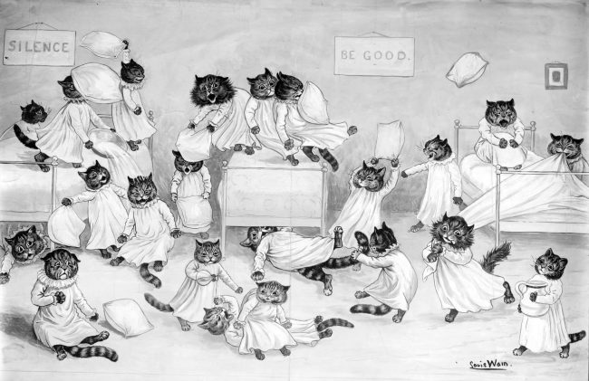 Finalmente, vale la pena mencionar a Louis Wain, un artista que literalmente se dedicó toda su vida a pintar gatos para aliviar su depresión tras la muerte prematura de su mujer.