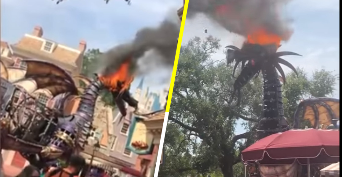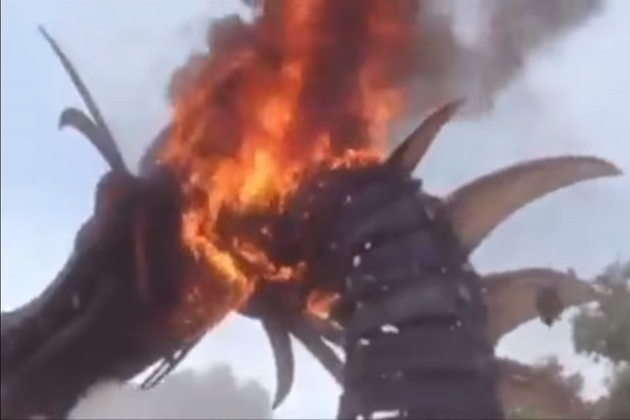 Algunos asistentes grabaron el momento en el que la cabeza del dragón, de la película Maléfica, se envuelve en llamas mientras todas las personas que se encuentran en el lugar se quedan asombradas, obviamente sin tener la más mínima idea de que en realidad sus ojos están presenciando un incendio en vivo. Minutos más tarde comienzan a darse una idea de lo que en realidad está pasando pues un empleado del parque llega con un extintor a apagar el fuego.