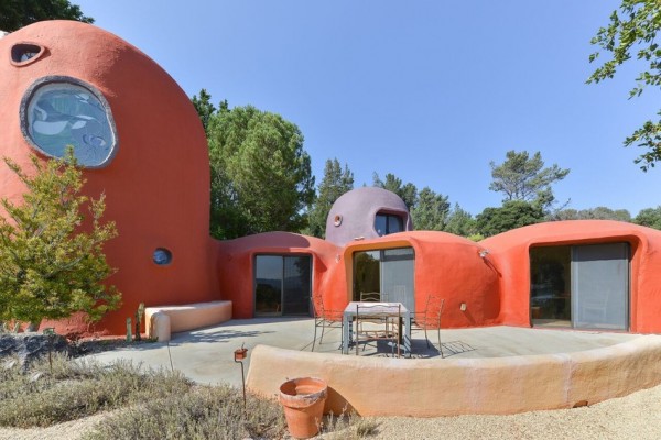 La casa fue construida en 1976 por el arquitecto Willima Nicholson, como un experimento en nuevos materiales de construcción, la forma redondeada proviene de rociar una especie de concreto sobre estructuras de metal, modeladas sobre globos.