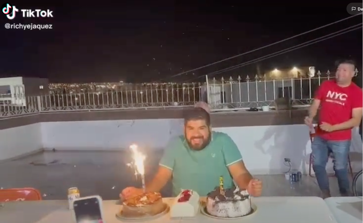 Se trata de un video que nos topamos en TikTok (ya ven que casi no se nos da eso) y donde podemos ver a un agradable tipo que celebra su cumpleaños en una especie de azotea y en compañía de sus compas. Una fiesta perfecta si me lo preguntan.