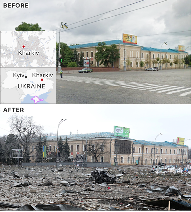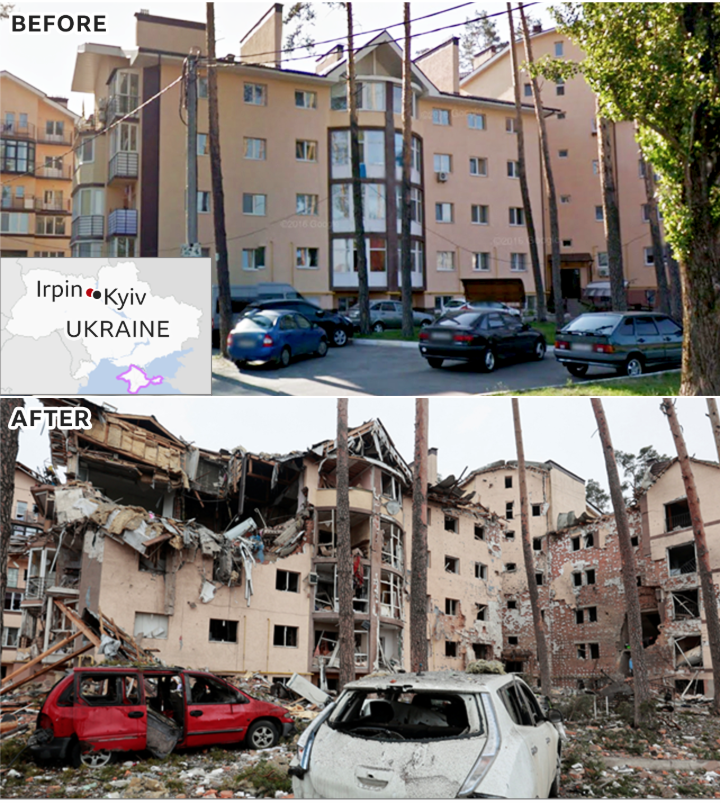 Desde escuelas, hasta zonas residenciales e incluso gimnasios y avenidas, estas son algunas fotos del antes y después que ha dejado la guerra de Rusia a Ucrania. Una que no parece tener fin y en la que ni los organismos internacionales han podido interceder para detener esta lamentable situación