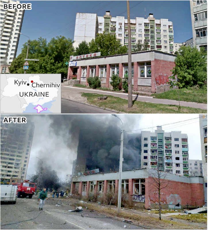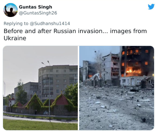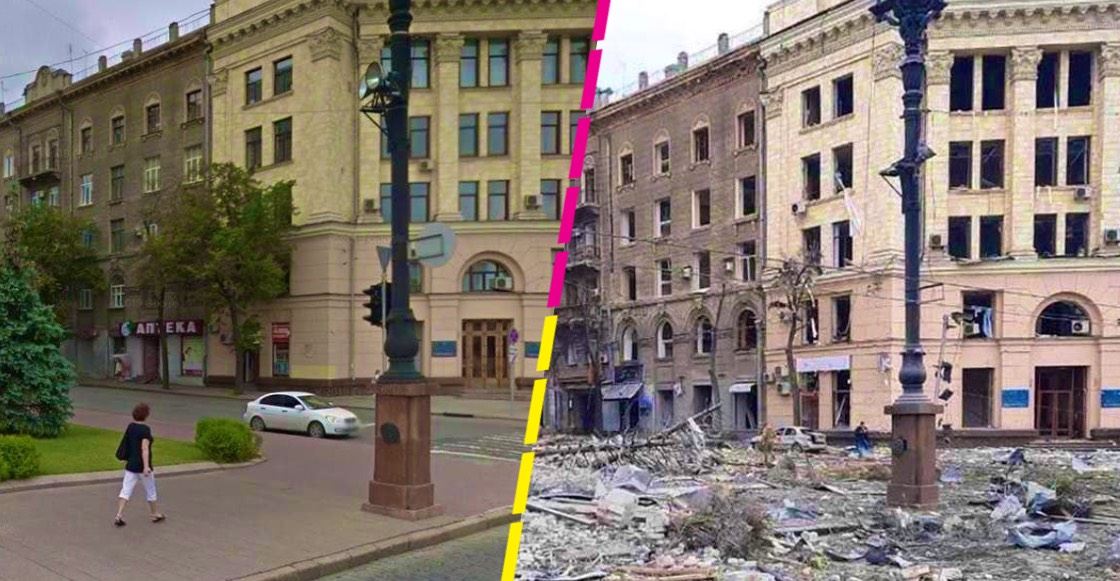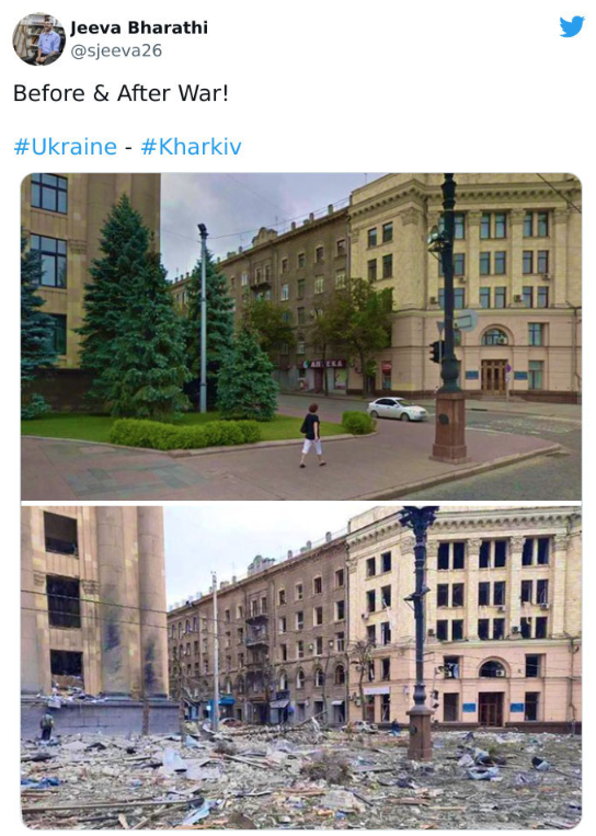 En redes sociales comparan el antes y después de varios lugares para comprobar el daño que ha provocado la guerra