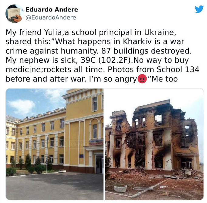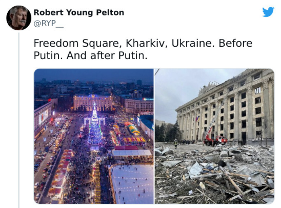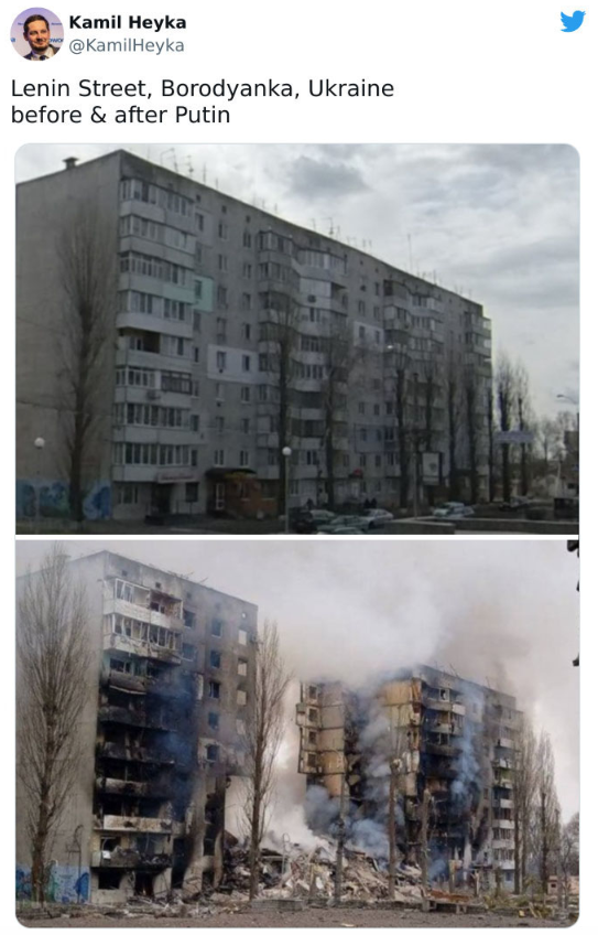 Desde entonces varios usuarios de internet se han dado a la tarea de compartir fotos de esos lugares en Ucrania que en menos de un mes han desaparecido o han quedado en escombros y cenizas gracias a los ataques aéreos que las tropas de Rusia han realizado en varios lugares de la capital.