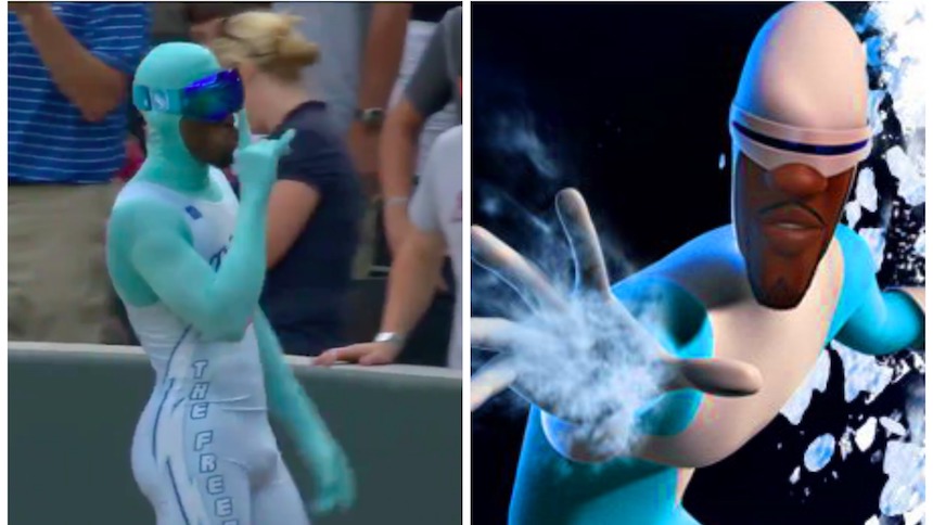 Este joven se ha hecho viral por la forma que ha humillado a los aficionados al béisbol en algunos partidos del ‘Rey de los Deportes’. Su primera aparición fue en un partido entre los Boston Red Sox y los Atlanta Braves. En dicho juego, el justiciero utilizó su súper velocidad para acabar con un aficionado, sólo que a diferencia del personaje de Los Increíbles, “The Freeze” no usa hielo (bueno no todo se puede en esta vida)