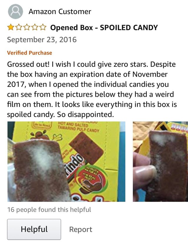 .. “received item and candy has mold”