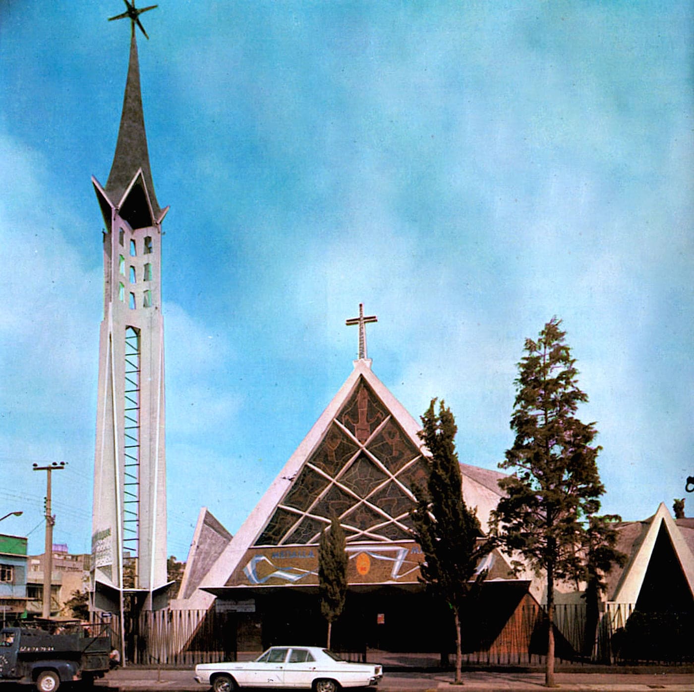 Construida por Luis Olvera y Miguel Revolledo sobre las ruinas de una iglesia más antigua, esta iglesia se inauguró en 1953 y pronto se hizo famosa entre los vecinos por el cristo de brazos abiertos que sobresale en la avenida Gabriel Mancera.