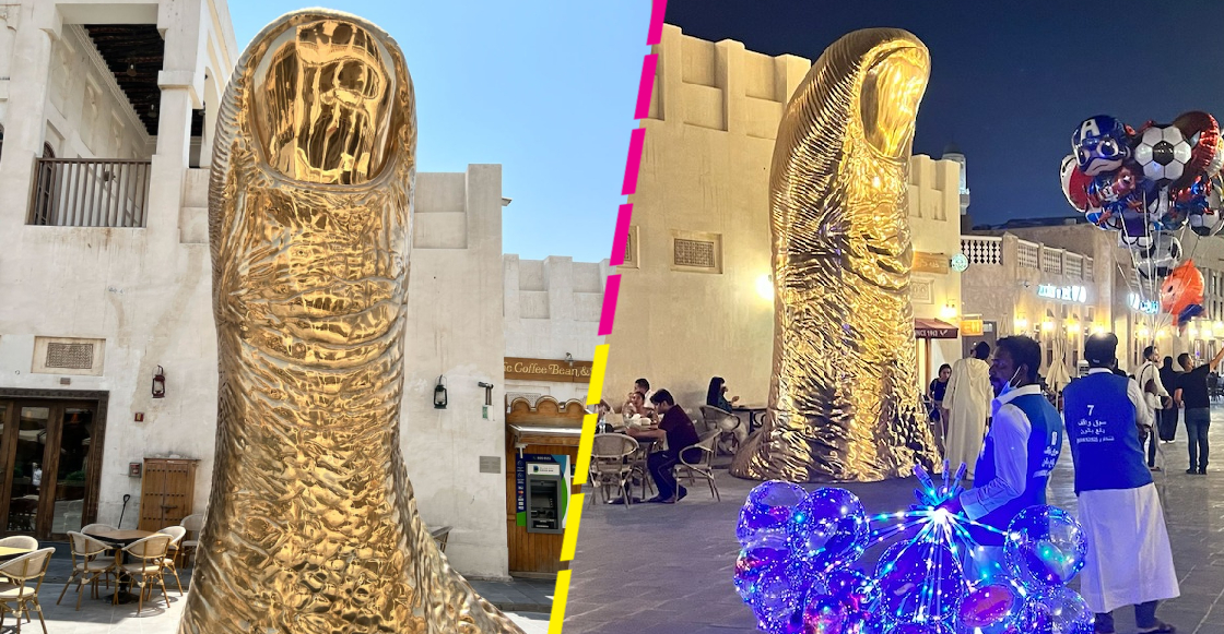 Seguramente le han visto en fotos, videos, reels y tiktoks de redes sociales. Un dedo gigante que brota desde el suelo en Souq Wakif, uno de los puntos más tradicionales (por no decir, que es el corazón social y cultural) de Qatar.