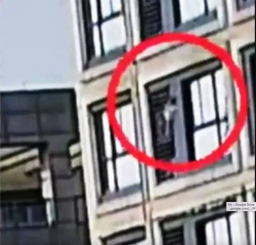 El sujeto comienza a posicionarse y en segundos se ve cómo atrapa a una niña. Es ahí cuando aparece la otra parte del clip que nos hace entender el contexto de la situación, pues la pequeña en cuestión cae de la ventana del quinto piso en un edificio.