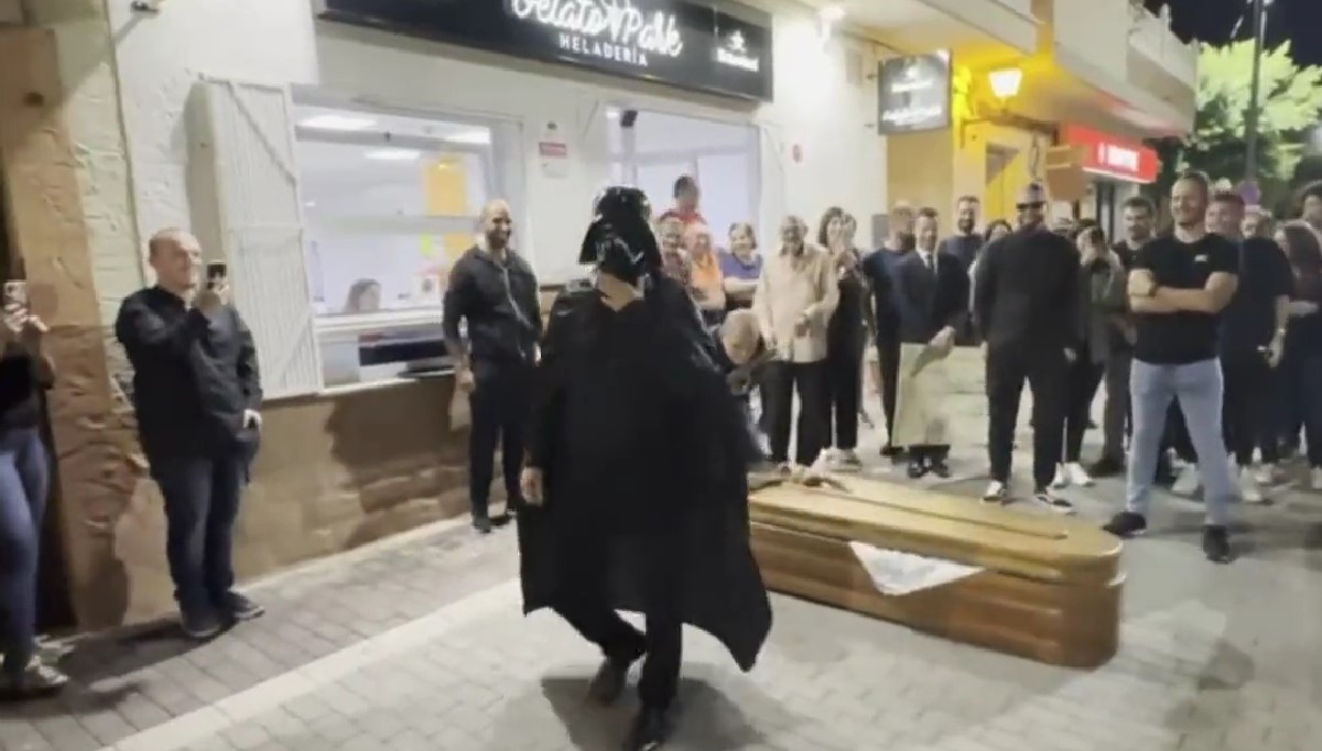 Sin embargo, para muchos aún es algo que amerita echarle cabeza e imaginación, como a este sujeto en la región de Murcia, allá en España. Lo que decíamos, combinó un ataúd, un disfraz de Darth Vader y el amor por su pareja para volverse viral.