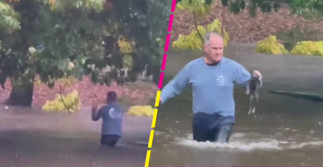 Como podrás ver en el video del rescate, el agua le llegaba a la altura de la cintura al hombre y la lluvia no cesaba, así que no hablamos de una cosa menor cuando decimos que fue muy valiente al meterse para sacar al animal del peligro.