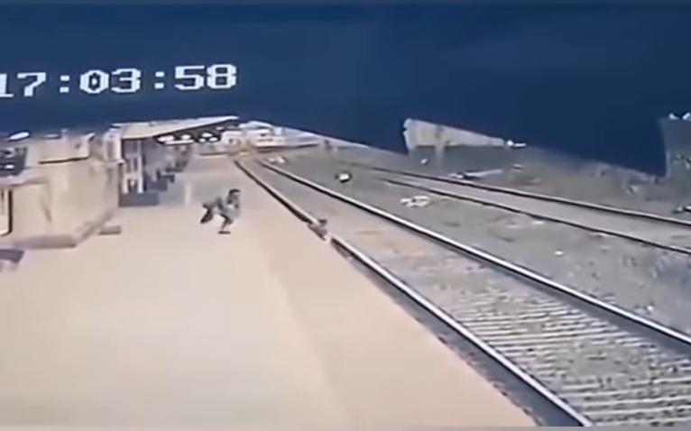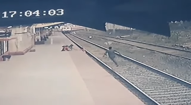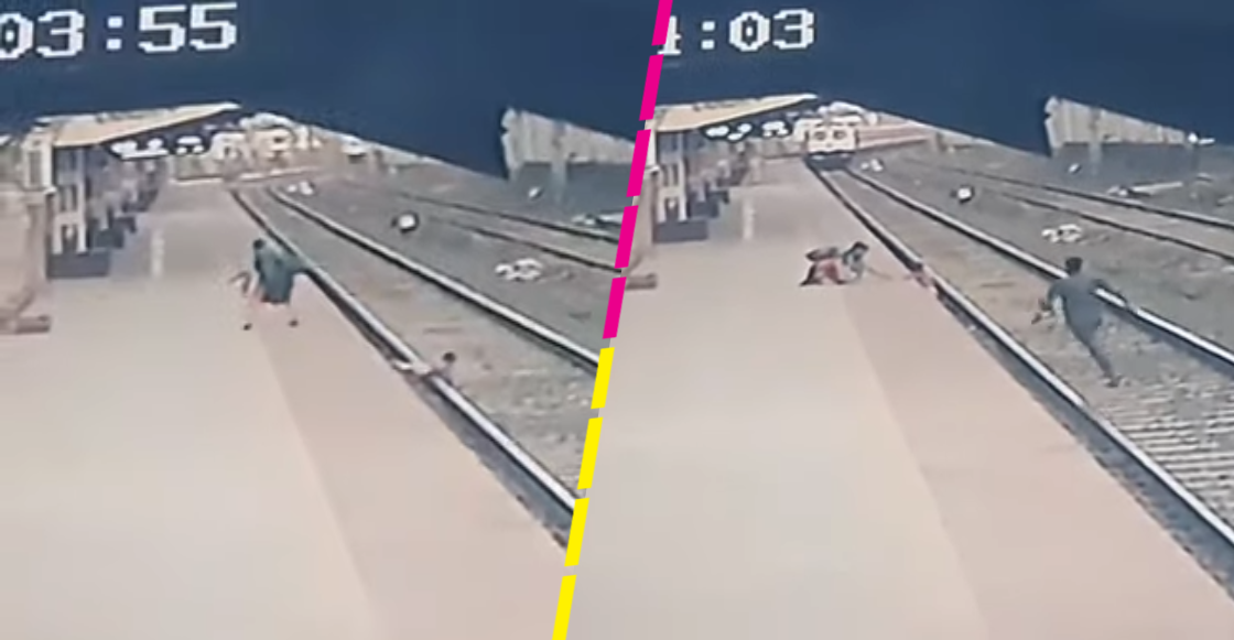En las imágenes de una cámara de vigilancia compartidas por Indian Railways, se alcanza a observar que un tren se acercaba a toda marcha justo cuando el pequeño había tropezado. La mujer no podía acercarse para intentar subir al chico y este último tampoco podía trepar al andén… pero no todo estaba perdido.
