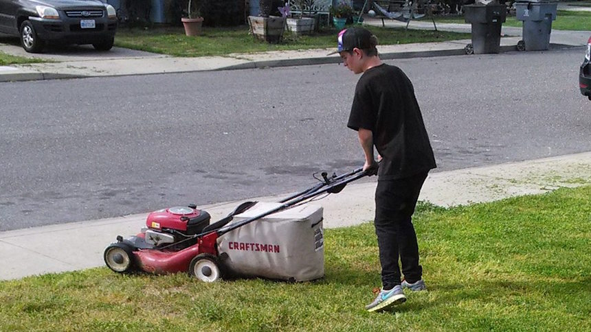 This 14 year old boy came by the house with a lawnmower wanting to mow our lawn for $5. Well…me being a hustler I had…