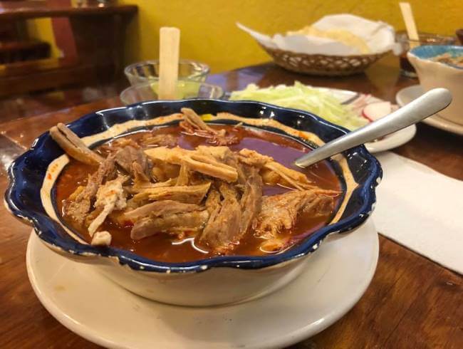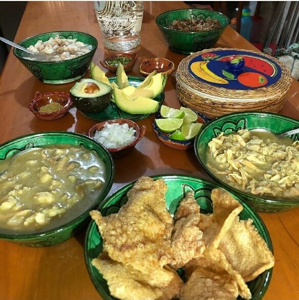 Además se cocina con granos de maíz cacahuazintle y se complementa con cebolla, rábanos, orégano, lechuga, limón y chile piquín, entre otros ingredientes que lo hacen único. (Pónganse pilas porque el maíz pozolero parece que está subiendo de precio como nunca, en este 2023).