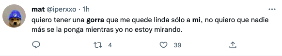 Los hombres, luego de entender el contexto (un rímel que te hace llorar es un hombre ogt), no se quedaron atrás y usaron una metáfora para hacer básicamente lo mismo, aunque lo hicieron hablando de gorras por ser un accesorio que la mayoría de ellos hacen. ¿Por? aún nos preguntamos lo mismo…