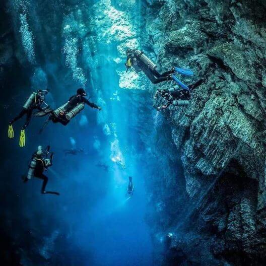 Las cuevas subacuáticas conectan muchos de los cenotes de la península de Yucatán, antiguo imperio Maya. En Quintana Roo hay contadas 358 de ellas. Todos estos sistemas submarinos tienen su propia colección de flora y fauna, que en gran parte vive en total oscuridad. Nosotros somos responsables de cuidarlas.