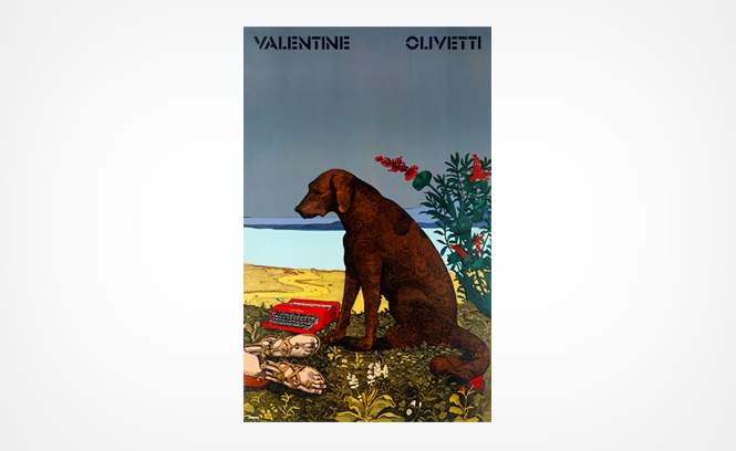 En 1968, realizó el primer arte visual para la antigua marca italiana de máquinas de escribir, Olivetti adaptando como una parodia la pintura de Piero di Cosimo, donde muestra el cuerpo de una ninfa. La creatividad del artista originario del Bronx, lo llevó a dibujar una máquina de escribir a los pies de la mujer, mientras que un perro triste pero fiel, lamenta la escena.