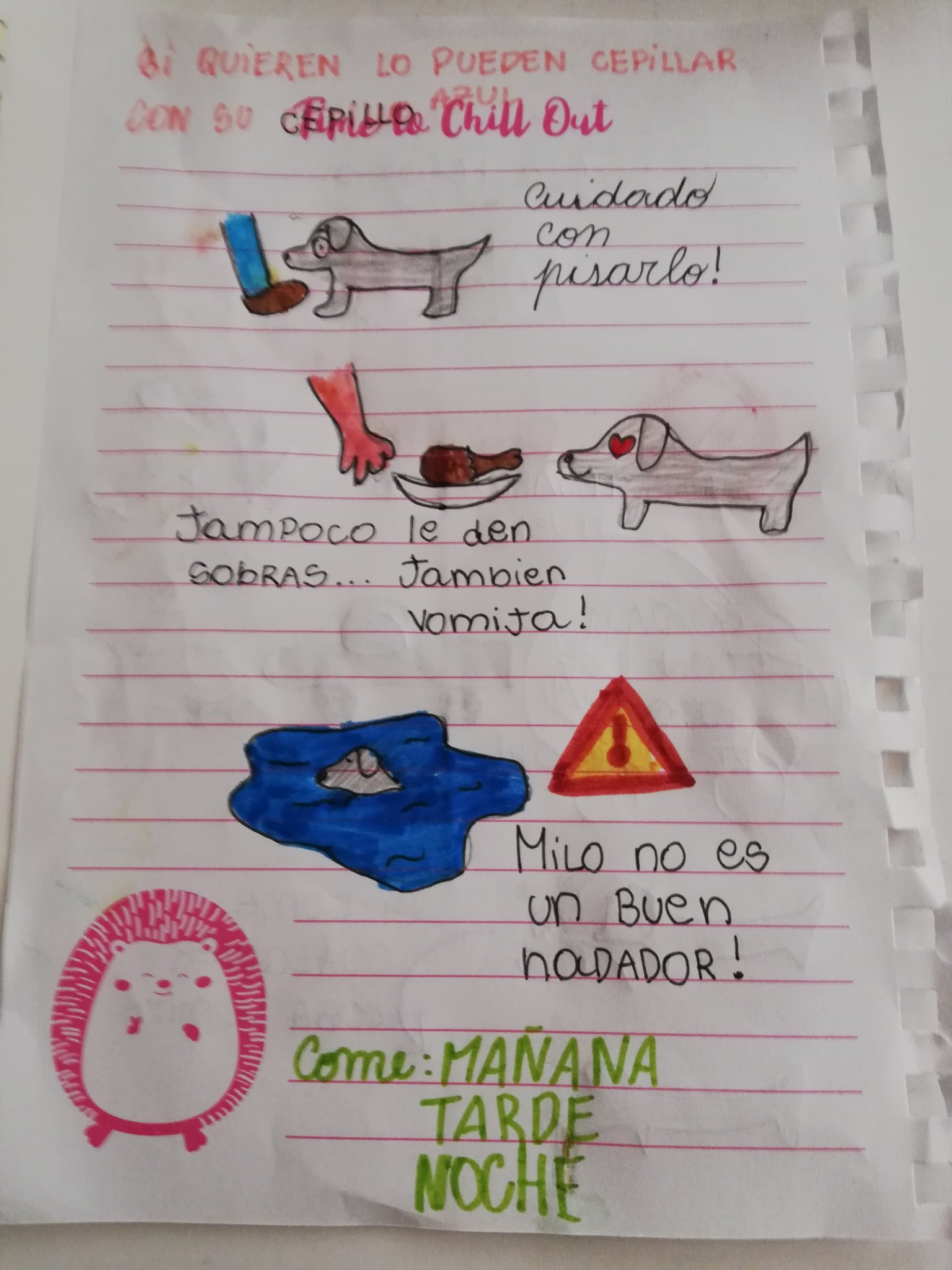 Sabemos que los queridos perros además de mucho cariño, necesitan tener cuidados mucho más específicos (dependiendo del doggo, claro). En los últimos años hemos visto cosas muuuy tiernas en redes sociales pero no como lo que les vamos a presentar hoy, pues esta niña, con crayolas y como pudo armó un pequeño manual lleno de instrucciones para que cualquiera sepa como cuidar a su perrito.