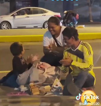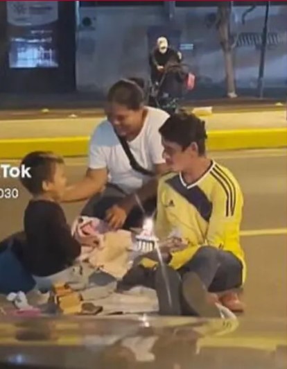 Celebraron el cumpleaños de su hijo en la calle y conmovieron al internet