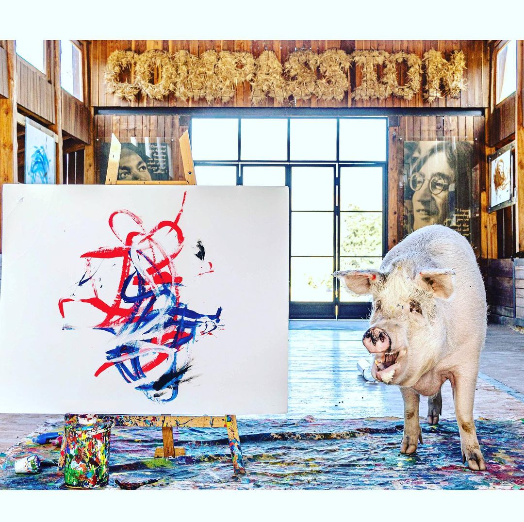 A lo largo de los años, Pigcasso y Joanne han trabajado juntas haciendo todo tipo de cuadros ‘abstractos’ que regularmente muestran al mundo en exposiciones (una de ellas llamada simplemente Oink) y hasta en su propia cuenta de Instagram.
