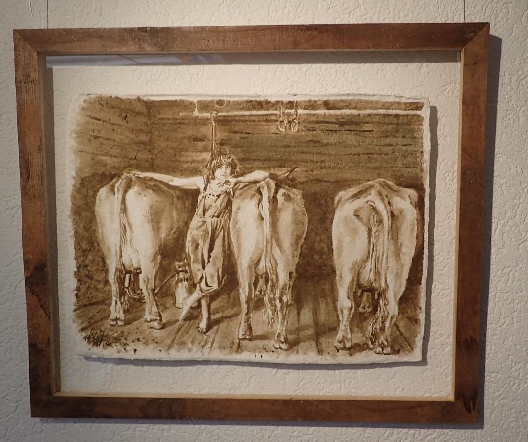 “Busco los excrementos de las vacas con un bote tan pronto como levantan la cola. Unas dos descargas dan para medio año de creatividad”, dijo el artista de las pinturas hechas con caca al sitio web de Ripley.