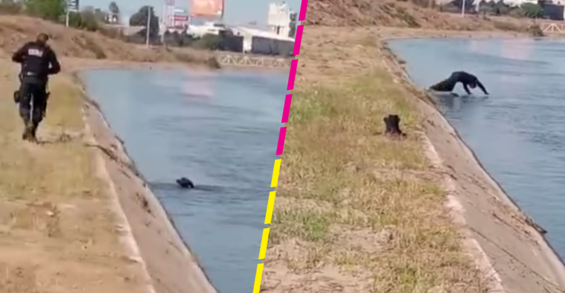 En los recientes días, se ha viralizado un video en el que se aprecia a un elemento de seguridad de aquel estado corriendo para auxiliar a un canino que era arrastrado por la corriente de un canal y que no podía salir de ahí. Sin pensarlo dos veces, el hombre se aventó al agua para ayudar al indefenso cachorro.