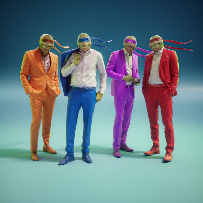 Las Tortugas Ninja si usaran trajes del color de su antifaz. ¿Se los imaginan?