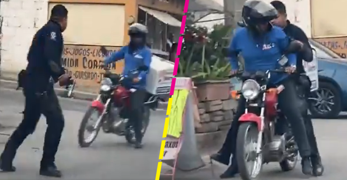 Algo así sucedió en los últimos días en el estado de Morelos cuando un elemento de seguridad realizaba una persecución. Sin embargo, los sospechosos escapaban a toda velocidad en una moto, pensando que seguramente se saldrían con la suya. Pero con lo que quizá no contaban es que un repartidor que pasaba por ahí le echaría la mano al policía.